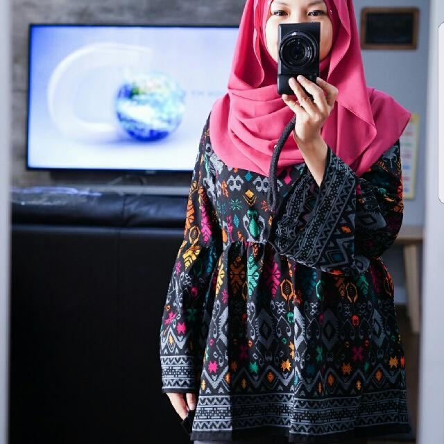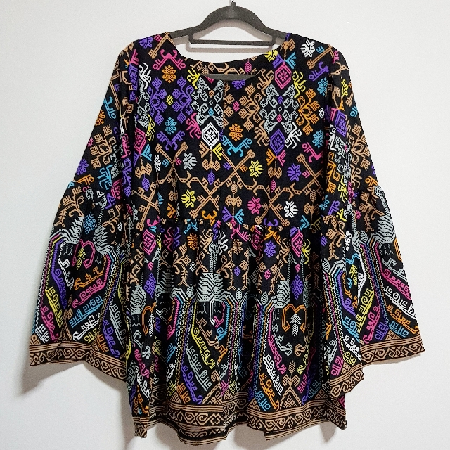 Babydoll Ethnic Songket Print Satin Modest Blouse Top Saloma Flare Long Sleeves Size Large Bff Black Colorful Small Pattern Brand New Women S Fashion Tops Blouses On Carousell