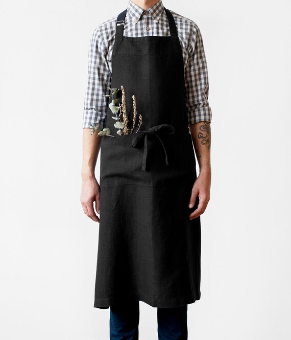 Schwarze Leinen Kochschurze Herren Schurze Mit Taschen Etsy De